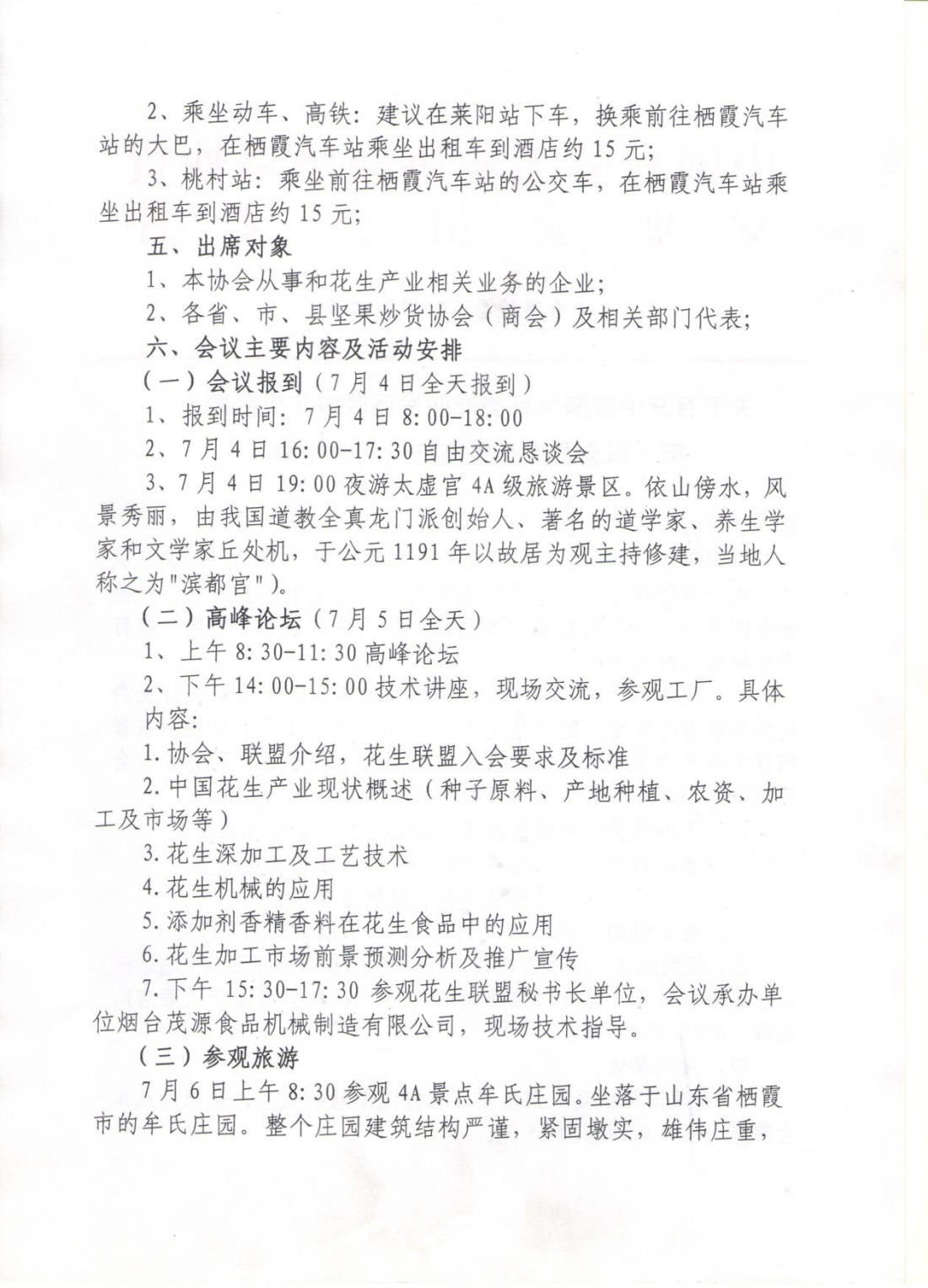 出席本次大會的嘉賓有本協(xié)會從事和花生產(chǎn)業(yè)相關業(yè)務的企業(yè),各省、市、縣堅果炒貨協(xié)會(商會)及相關部門代表。本次大會內(nèi)容安排流程:1.協(xié)會、聯(lián)盟介紹,花生聯(lián)盟入會要求及標準;2.中國花生產(chǎn)業(yè)現(xiàn)狀概述(種子原料、產(chǎn)地種植、農(nóng)資、加工及市場等);3.花生深加工及工藝技術;4.花生機械的應用;5.添加劑香精香料在花生食品中的應用;6.花生加工市場前景預測分析及推廣宣傳;7.參觀花生聯(lián)盟秘書長單位,會議承辦單位煙臺茂源食品機械制造有限公司,現(xiàn)場技術指導。