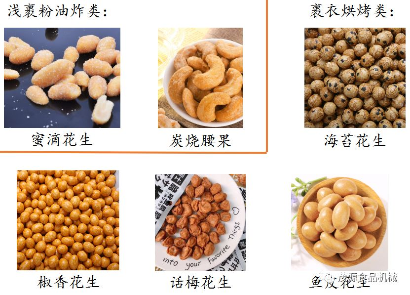 裹衣烘烤類(lèi):魚(yú)皮花生、海苔花生、話梅花生等